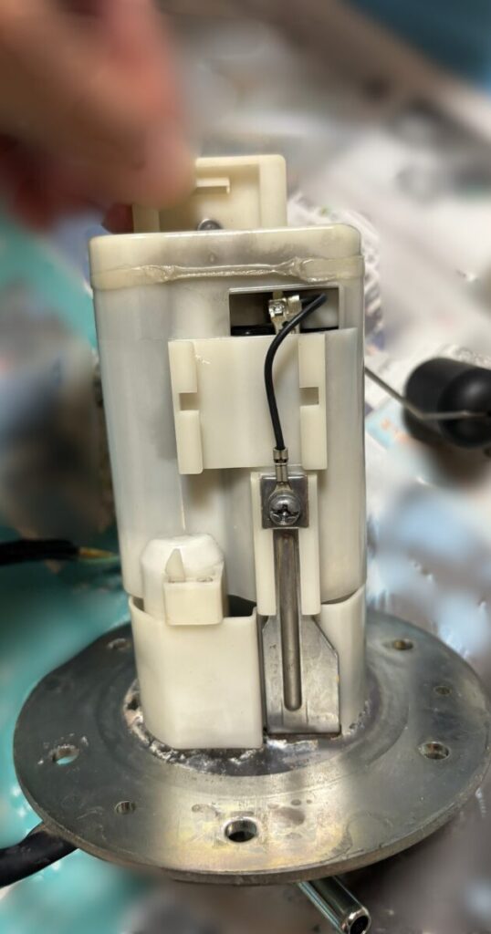 - ポンプの引き抜き: タンク底部のボルト(6本程度)を均等に緩め、ポンプASSYをゆっくり引き抜きます。この際、燃料ゲージのフロートアームを曲げないよう慎重に行ってください。